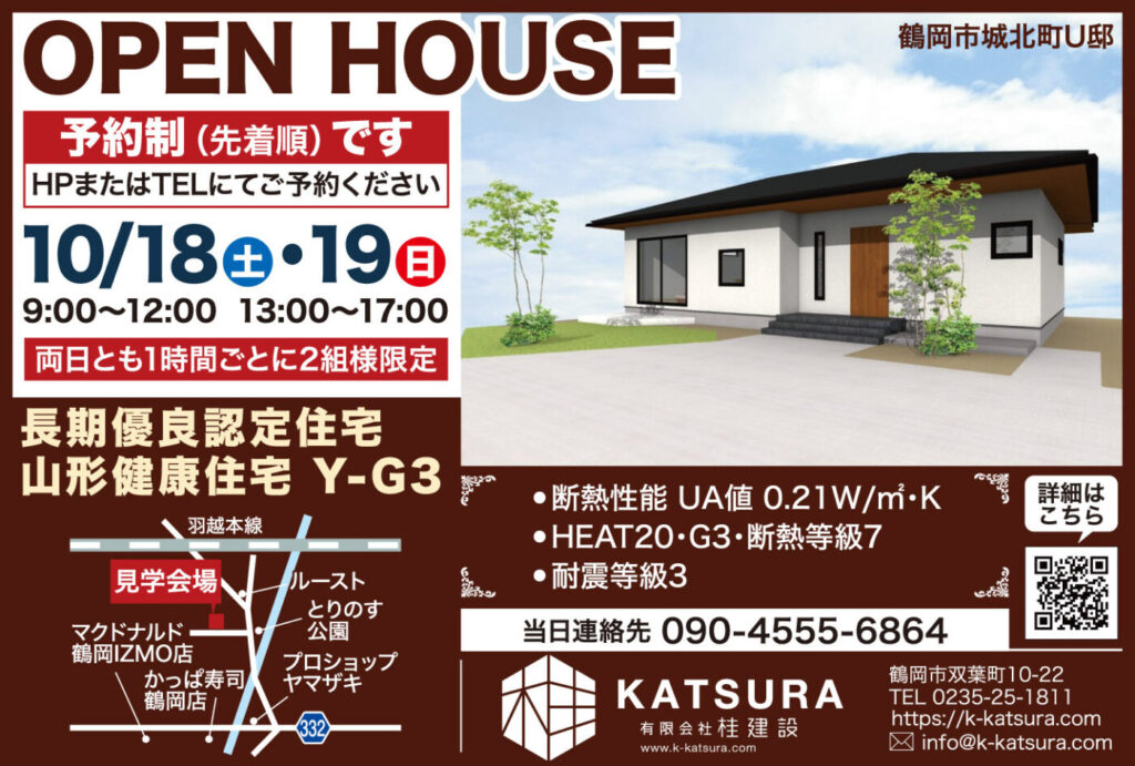 R7年10月18日(土)19日(日)新築完成内覧会を開催します【HEAT20・G3・断熱等級7・耐震等級3】