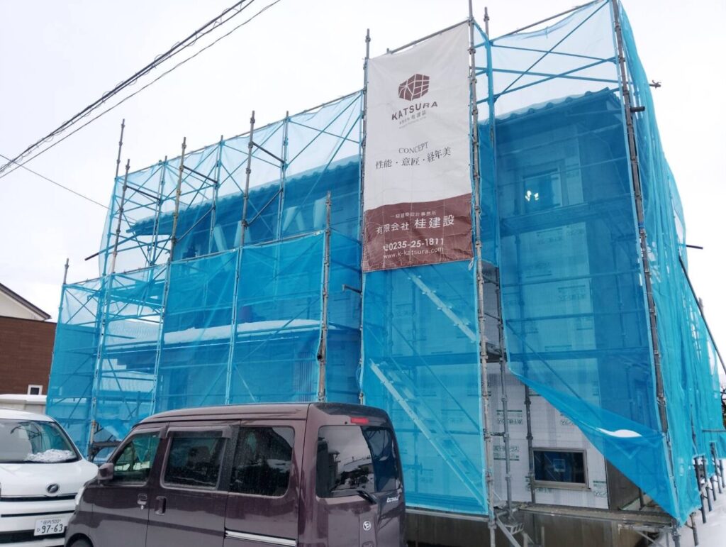 blogブログ 三川町O邸【HEAT20・G3・断熱等級7 UA値0.22w/㎡・k・耐震等級3】 2026.01.27 現在、外部塗り壁下地作業に進んでいます。 完成までもう少し 三川町|新築 敷地面積 504.00㎥ 152.46坪 延床面積 107.53㎥ 32.5坪 断熱性能 UA値 0.22w/㎡・k 酒田市松山N邸【HEAT20・G3・断熱等級7 UA値0 お問い合わせ お電話・FAXでのお問合せ TEL FAX 0235-23-6169 フォームからのお問い合わせはこちら